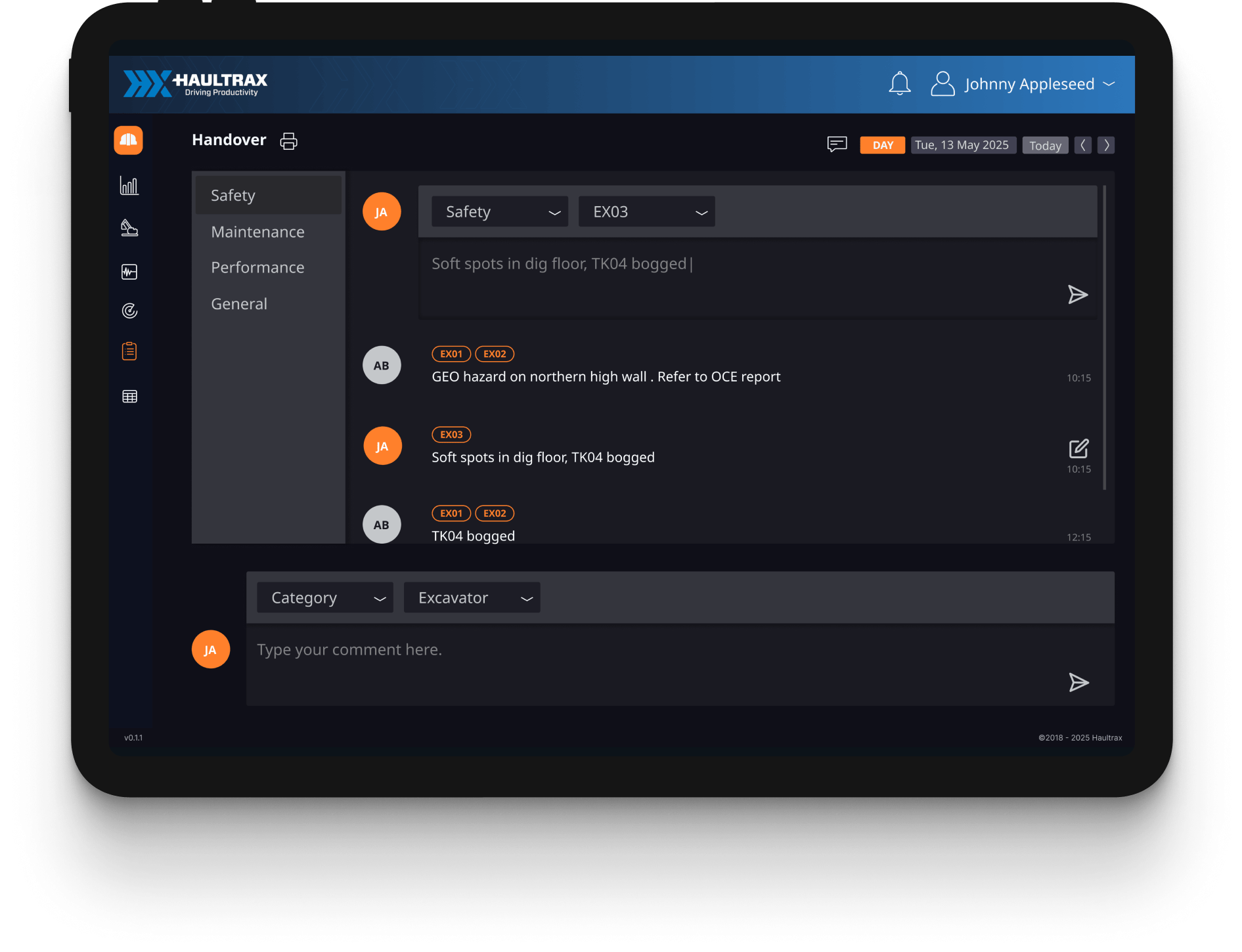 Type your shift notes as they happen – whether you’re in the cab or heading between sites- and print a full handover at the end of the day.